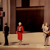 In 1979 a trip in the United States forced him to confront with new urban spaces that deeply differed from the environment he had until then experienced. What he found was a surprising landscape, seemingly chaotic and disharmonic yet bursting with visual stimuli from which he could masterly isolate the most significant elements. Chromatic themes and geometrical forms still prevail in this series, titled Urban Landscape, as the works rarely portray a human figure. It's only later on , with the series Presenza Assenza (end of 1979/1980) that human shapes appeared, in the form of ethereal and disquieting shadows, playing with architectural elements and overturning perspectives.